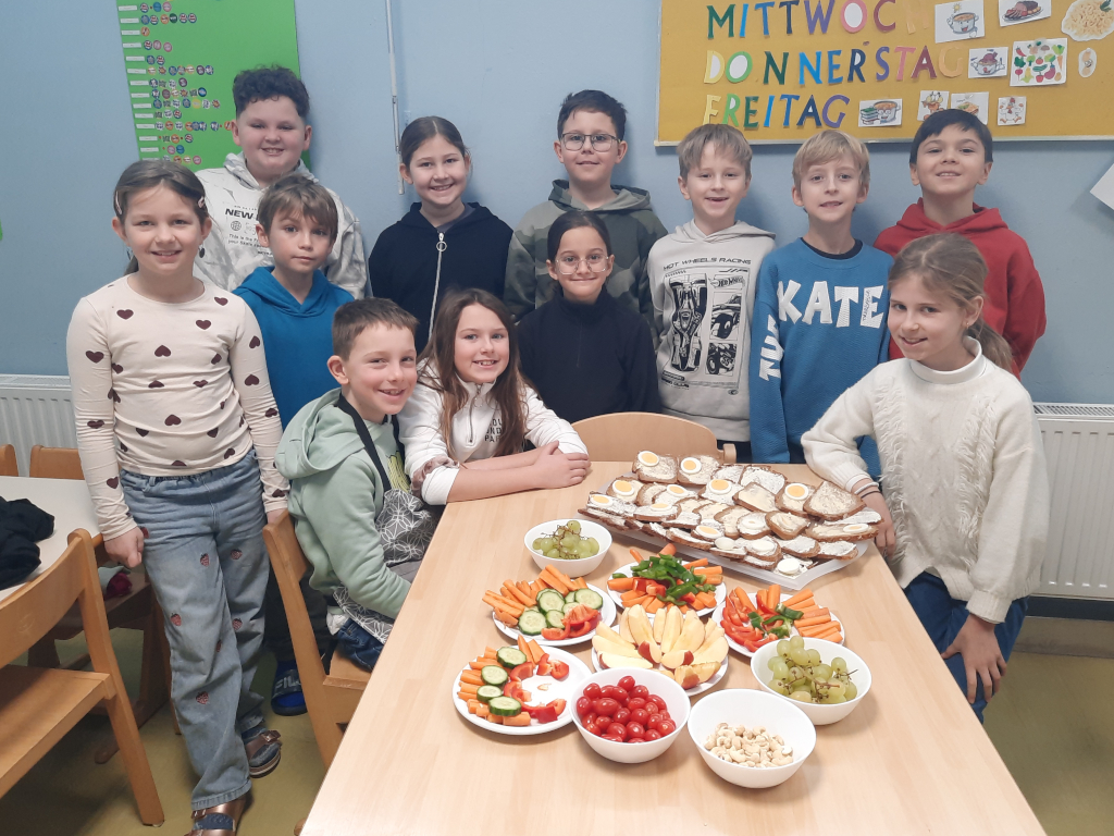 Die Kinder der 3a Klasse haben heute gemeinsam eine gesunde Jause zubereitet und dann auch ganz genussvoll verspeist. Hmm, das war lecker!